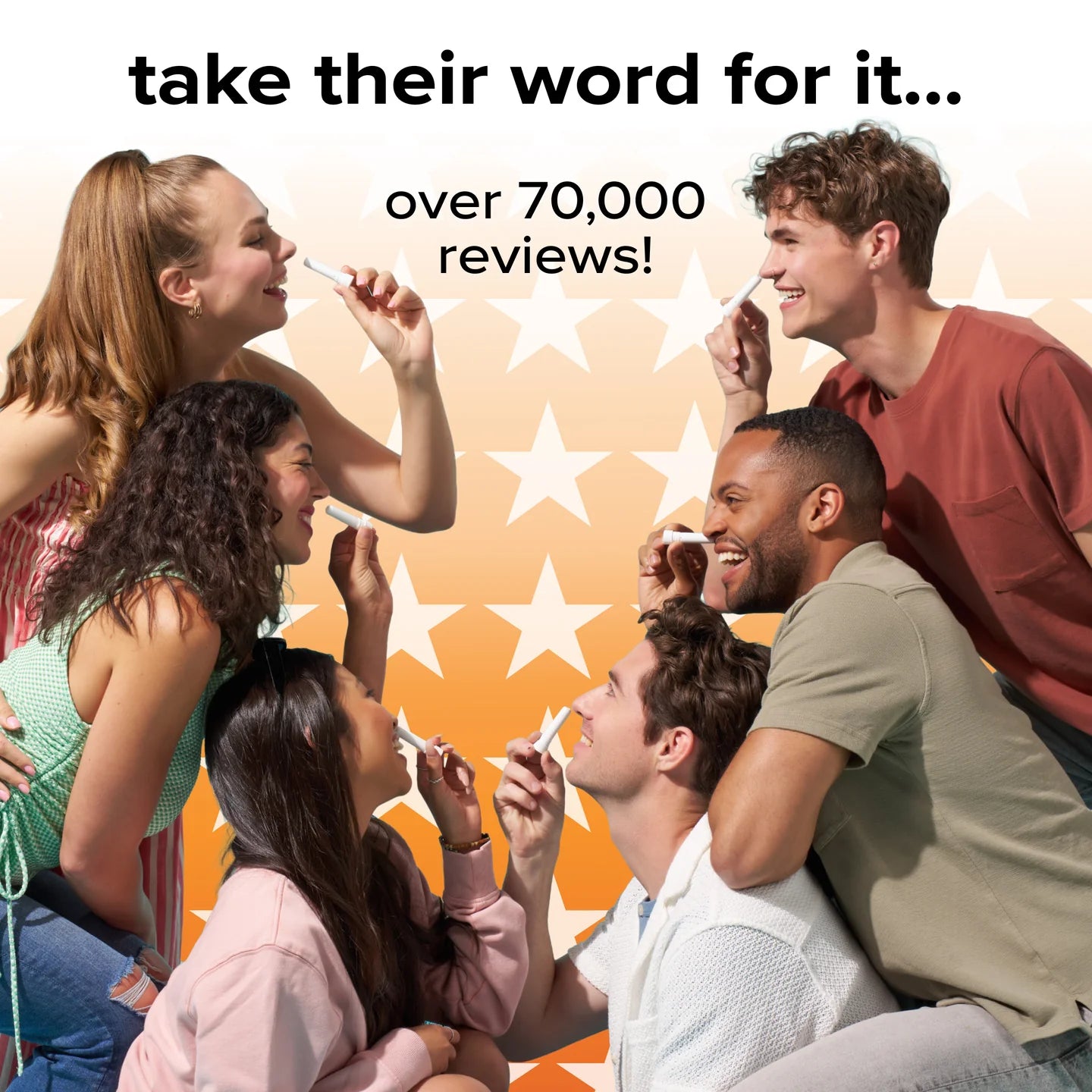 Nasal inhalers like BoomBoom are different. Your sense of smell is very powerful and plays a major role in how you feel. So when you blast your nasal cavity with tasty berry-flavored menthol, peppermint, and eucalyptus oils, you’ll experience a unique dynamic and mental energy... not a chemical energy. It’s going to give you a quick refreshing boost that feels amazing. And if you’re in a funk, it will help SNAP you out of it… but in a much more natural way!